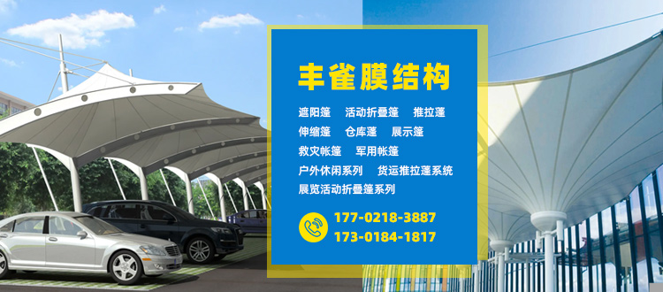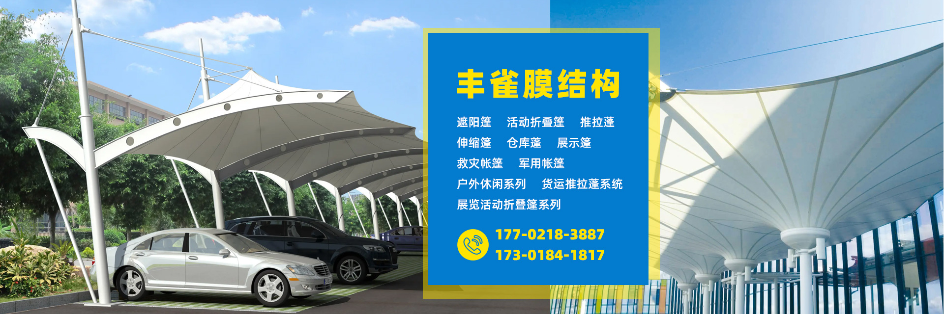 上海丰雀膜结构工程有限公司是一家国内较早借鉴国外技术自行研制、开发、设计、生产、销售各类遮阳篷,活动折叠篷、篷房、推拉蓬、仓库蓬、展示篷、伸缩篷、推拉篷(推移篷)、救灾帐篷、军用帐篷、曲臂式伸缩遮阳系统、货运推拉蓬系统、展览活动折叠篷系列、各式遮阳(遮雨)篷系列、各式中高档遮阳伞、户外休闲系列、广告伞、小伞等专业生产及安装的厂家。经过多年的努力开拓拼搏,己拥有完备的生产设施和场地,有健全的组织机构和雄厚的技术力量,有完善的生产管理和销售服务系统。上海丰雀膜结构工程有限公司正在努力成为中国遮阳行业、遮阳用品的优秀企业。全心的服务于广大消费者。